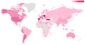 Detecções globais do Danabot segundo a telemetria da ESET, desde 2018, sendo historicamente Polônia, Itália, Espanha e Turquia os países mais atacados, e Peru, Argentina, Chile e México os principais da América Latina.