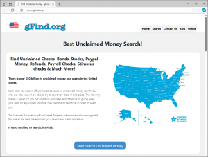 Exemplo de site falso que promete a busca por fundos não reclamados.