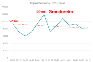 Já os trojans bancários, que roubam credenciais bancárias e/ou realizam fraudes no Internet Banking, somaram 1,1 milhão de tentativas de ataques (3.088 por dia). Os especialistas da empresa destacam que os criminosos nacionais buscam o lucro a todo o momento e, por esse motivo, se tornaram especialistas em fraudes financeiras. Em 2024, a Kaspersky colaborou com a Interpol, Policia Federal e outras organizações e essa parceria resultou na prisão de membros do grupo por trás do trojan Grandoreiro, que aconteceu em abril. O impacto dessa ação pode ser vista na queda dos ataques de trojan mas, infelizmente, os criminosos se reorganizaram e a tendência desse tipo de ameaça se mantém inalterada.
