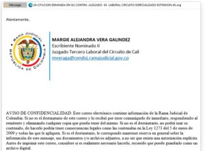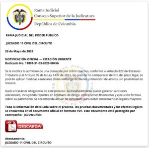 - O público geral na Colômbia – e possivelmente no Brasil – também deve estar atento a mensagens que aparentam vir do sistema judiciário ou de instituições financeiras.