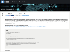 Figura 1 – OnionGPT oferecido no fórum Dread