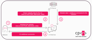 Fluxo proposto para malware utilizar um chat online com IA para se comunicar com um servidor C2